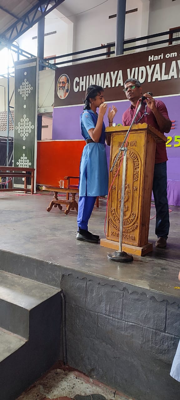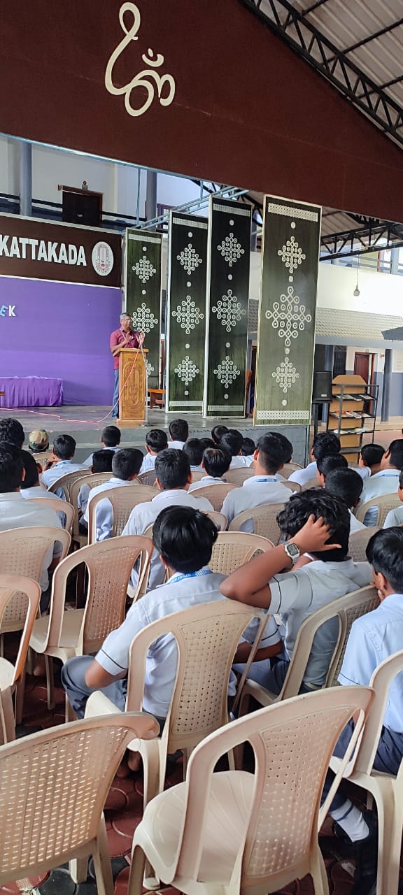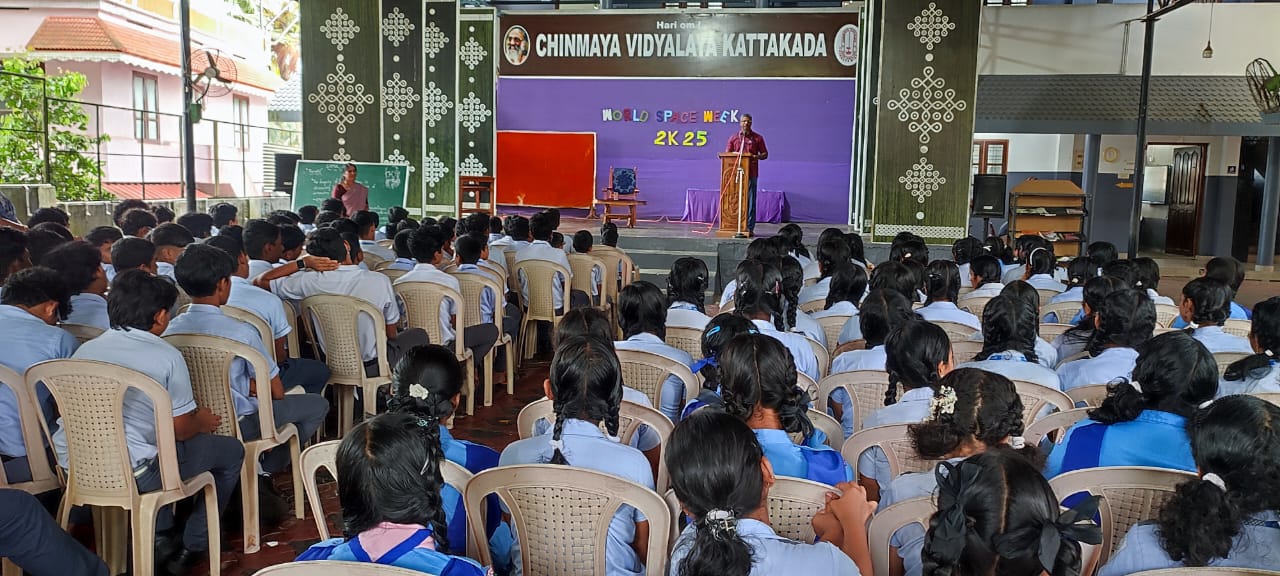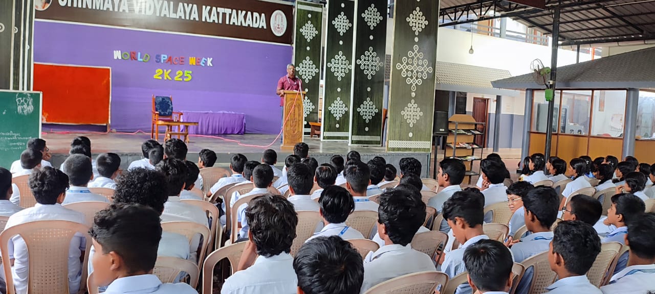 A Cyber Awareness Class was conducted in the school for students of Classes 7, 8, 9, 11, and 12. The session was led by Mr. Santhosh R., Sub Inspector of Police, Cyber Crime Police, Thiruvananthapuram Rural, who enlightened students on safe and responsible use of the internet. The interactive session helped students understand cyber threats, online safety measures, and the importance of digital ethics.