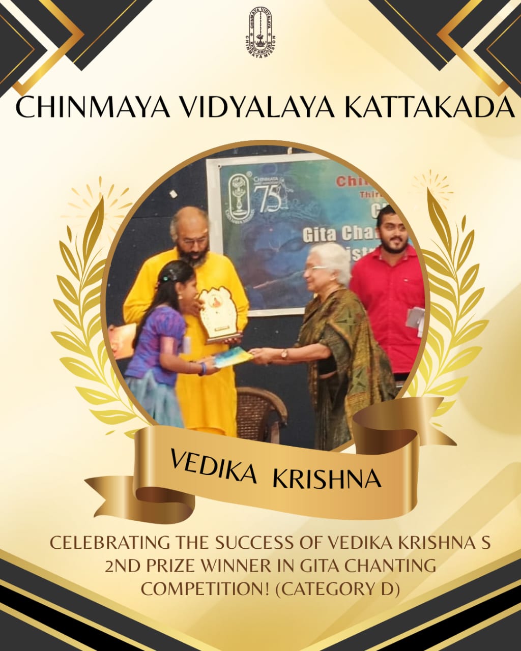 Our students and teacher brought glory to the school at the District Level Gita Chanting Competition. Sanvi Arun, Niharika P. M., Avanthika J. Nair, Vedika Krishna S, Alfidha A. N., and Kalpitha S. S. excelled in their respective categories, while our teacher, Archana K. Nair, secured the 2nd position in Category H. Their remarkable achievement reflects devotion, discipline, and a deep connection with the values of the Bhagavad Gita.